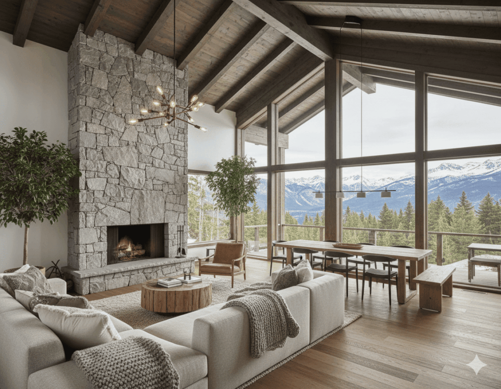 Diseñamos espacios con grandes aperturas que enmarcan el paisaje, utilizamos materiales orgánicos como la madera, la piedra y el lino para crear una atmósfera de serenidad, y confeccionamos una transición fluida entre la casa y el jardín.